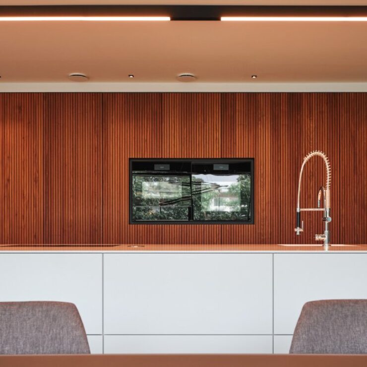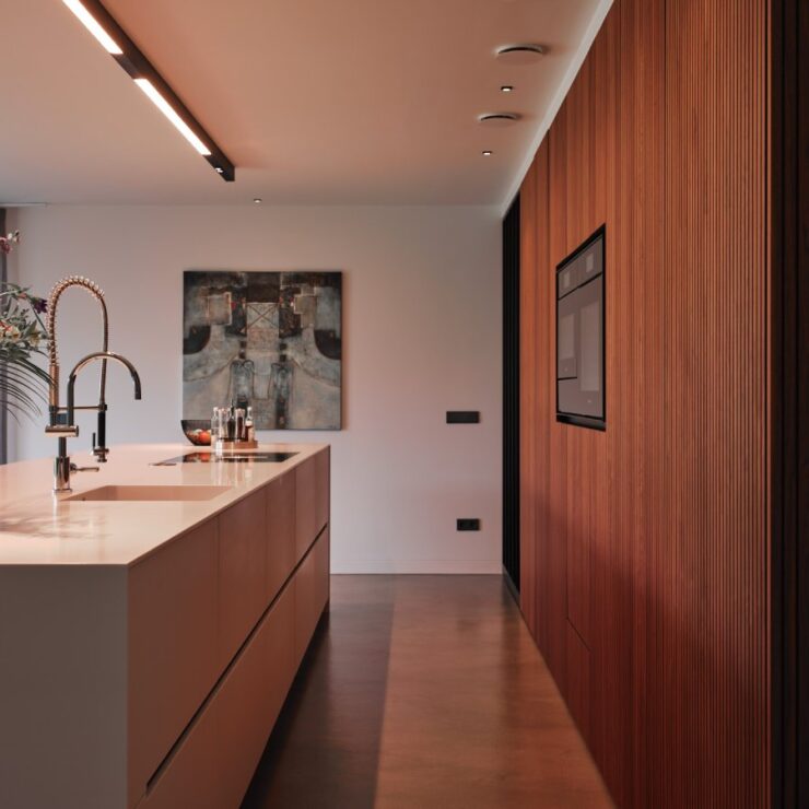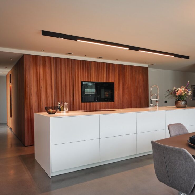 Voor dit stijlvolle project zijn architect Rob Zeelen, Mereno en Mennen Keukens + Interieurs de samenwerking aan gegaan. Architect Rob Zeelen is aan de slag gegaan om een prachtig ontwerp te maken voor deze woning en hiermee ervoor te zorgen dat de woning één geheel wordt door te letten op de kleinste details. Mereno heeft de productie van hoogwaardige, op maat gemaakte meubels en interieurstukken verzorgd. Mennen Keukens + Interieurs was verantwoordelijk voor het nauwkeurig inmeten van al het interieur en de uiteindelijke montage.