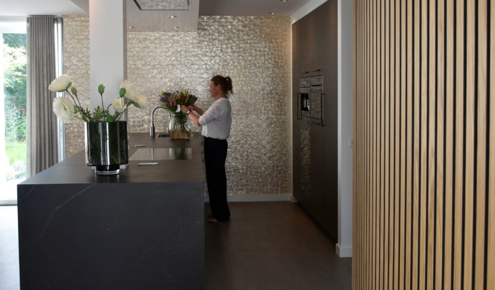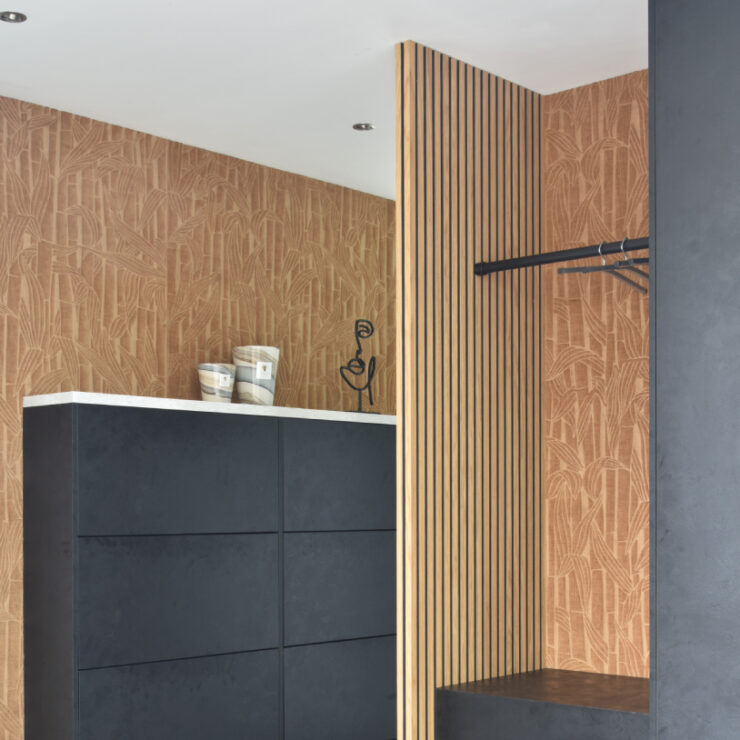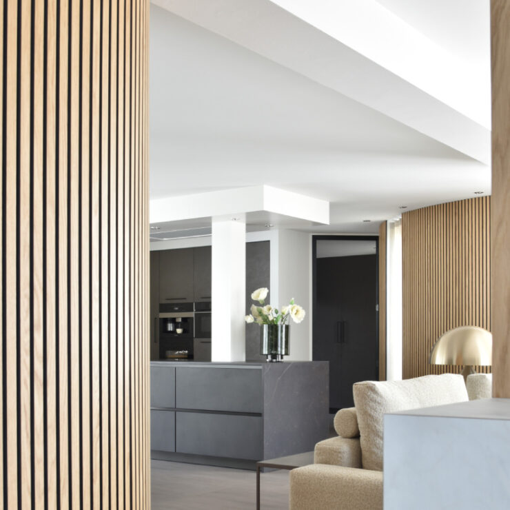 Totaalinterieur met stijlvolle lattenwand in moderne stijl