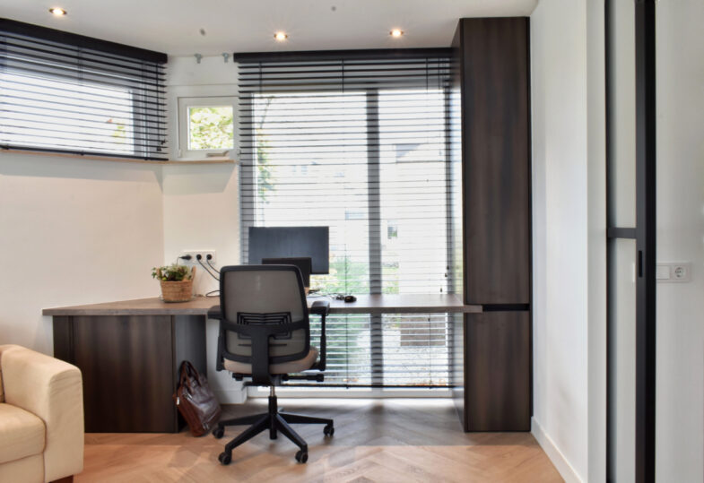 Naast de keuken hebben we voor deze woning ook de werkkamer mogen realiseren en een stijlvol dressoir. Deze zijn in dezelfde stijl gerealiseerd als de keuken.